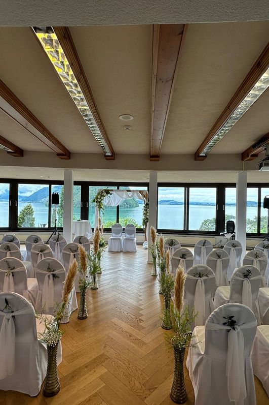 Das Campus Hotel Hertenstein begeistert mit seiner exklusiven Lage direkt am Vierwaldstättersee. Der lichtdurchflutete Festsaal mit Platz für 170 Gäste und atemberaubender Seesicht schafft eine unvergessliche Atmosphäre für Ihren besonderen Tag. Moderne Eleganz trifft auf idyllische Natur – perfekt für eine stilvolle Feier mit einzigartigen Momenten. Lassen Sie uns gemeinsam Ihre Traumhochzeit gestalten!