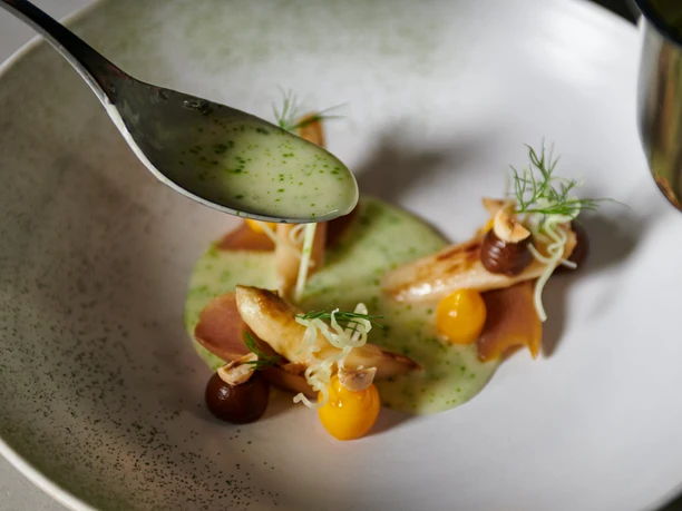Directly on Lake Lucerne, between the city center and the view of the most beautiful Alpine panorama, you will discover a cuisine that brings the scent of mountain meadows, the transparency of glacier crystals and the warmth of Alpine mountain huts to your plate. The philosophy of chef Maximilian Huber has a clear signature: the terroir of the Alps. Dishes are created in dialog with producers, shaped by the rhythm of nature and refined using traditional artisan techniques such as fermentation, smoking, air-drying and salting.