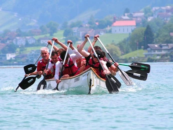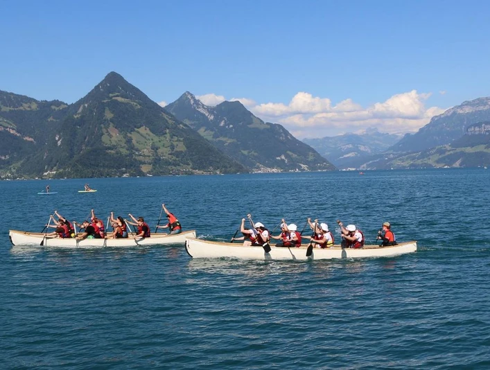 Dive into an unforgettable team canoe event on Lake Lucerne, where the motto is "Together in the Same Boat." In canoes for up to ten people, enjoy nature and steer the boat as a team. Experienced canoe guides ensure your comfort, offer paddling tips, and share fascinating stories about the legendary lake. The event concludes with a fun competition.