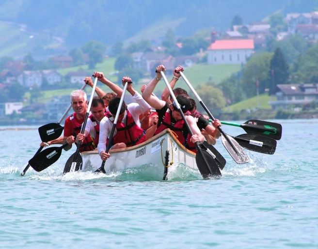 Dive into an unforgettable team canoe event on Lake Lucerne, where the motto is "Together in the Same Boat." In canoes for up to ten people, enjoy nature and steer the boat as a team. Experienced canoe guides ensure your comfort, offer paddling tips, and share fascinating stories about the legendary lake. The event concludes with a fun competition. Additionally, at the Buochs location, enjoy an apéritif and barbecue on the lakeside terrace, utilize a fully equipped seminar room, and explore other activities such as a barbecue tour or a sunrise brunch cruise.