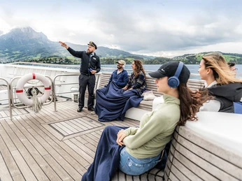Sustainable cruising on Lake Lucerne – aboard the Saphir H₂ Experience the city of Lucerne and its majestic mountain panorama from a new perspective – silent, innovative and sustainable. The one-hour cruise on the Saphir H₂, Switzerland’s first hydrogen-powered passenger vessel, combines cutting-edge technology with pure cruising pleasure. Thanks to the convertible roof, you can enjoy the fresh breeze and unobstructed views of the most beautiful corners of Lucerne’s bay. The free audio tour shares fascinating stories about the lake, the city and the surrounding peaks – making your journey a true highlight.
