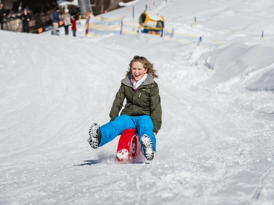 Snowtubing is fun all round. You can whizz down the piste on a rubber tyre. Whether sitting or lying down, forwards or backwards, it's entirely up to you. The covered conveyor belt takes you back to the top in no time at all.