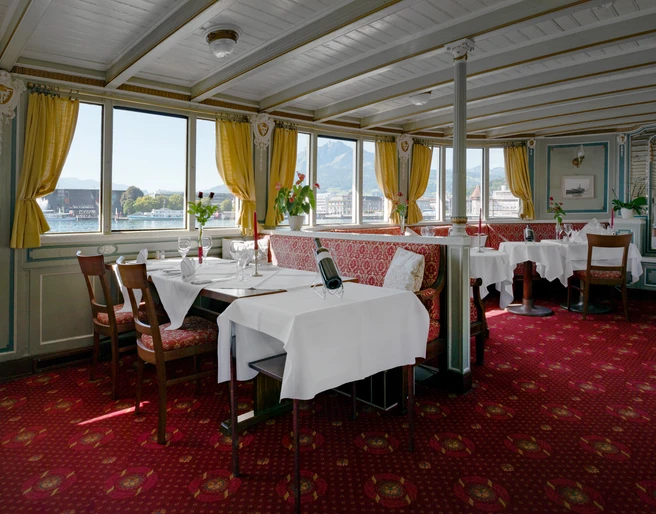 The ship has the right setting for every occasion. The historical Jugendstil captain’s saloon for romantic candlelit dinners. The anchor parlour for a rustic evening. The terraces for warm summer’s days and stunning views. And the midships bar for after-work drinks.