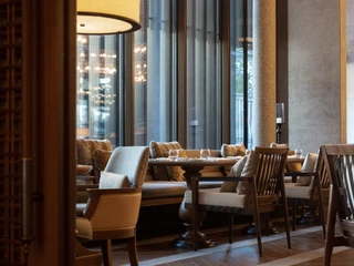 The two semi-private dining rooms with a view of The Restaurant provide a wonderful setting for exclusive lunch and dinner parties in an alpine-chic environment. Both rooms are decorated in warm tones, which is emphasised in particular by the lovingly crafted wood and fur elements.