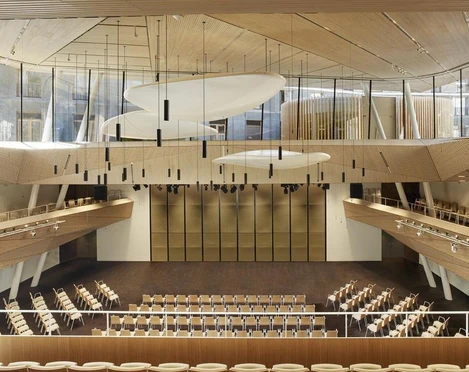 The new Andermatt Concert Hall, designed by Studio Seilern Architects, features an intimate hall with an exceptionally flexible stage. The acoustics and theatre design are by Kahle Acoustics and dUCKS scéno respectively, the same teams behind the Philharmonie de Paris.