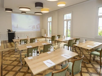The interior design combines cosiness, lifestyle and design as well as the interplay between past and present. In the extraordinary rooms with chandeliers and huge window fronts for up to 500 people, the creativity of the seminar participants is unimaginably inspired. During the breaks, the Hotel Bellvue-Terminus serves inspiring BrainFood cuisine to the participants.