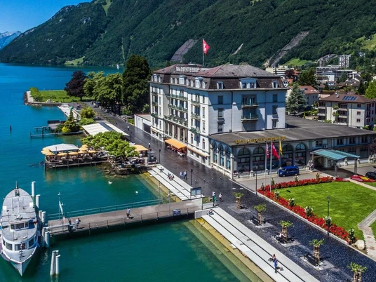 The hotel boasts a fantastic location, right on the shores of Lake Lucerne, in the middle of a beautiful private park with a view of the Uri Alps. The modern restaurant area shines with warm colours and the elegant spa area offers another highlight with its outdoor whirlpool.
